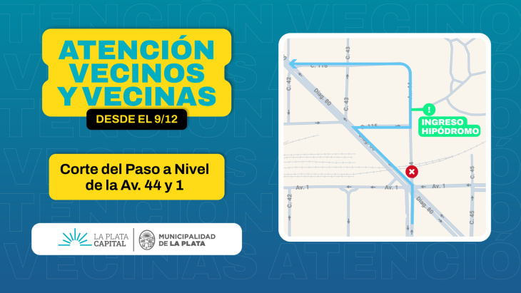De esta manera, en caso de circular por 44 en sentido hacia 1 será obligatorio desviarse por diagonal 80 y retomar 44, mientras que aquellos conductores que circulen por 1 solo podrán girar a la derecha por diagonal 80. En ambos casos, para acceder al Hipódromo deberá tomarse la calle 115.
