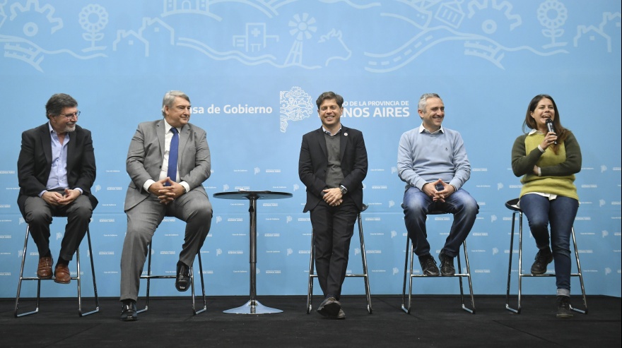 El gobernador de la provincia de Buenos Aires, Axel Kicillof, encabezó este jueves el acto de extensión del alcance del Boleto Estudiantil Gratuito a seis universidades del interior bonaerense. Fue en el Salón Dorado de la Casa de Gobierno, junto al director general de Cultura y Educación, Alberto Sileoni; los ministros de Desarrollo de la Comunidad, Andrés Larroque; y de Transporte, Jorge D’ Onofrio; y la directora provincial de Juventudes, Ayelén López.