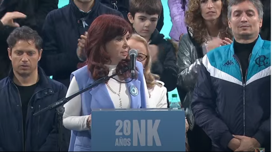 La vicepresidenta Cristina Fernández de Kirchner encabezó en Plaza de Mayo el acto por el 25 de Mayo y los 20 años de la asunción presidencial de Néstor Kirchner, donde el operativo clamor de la militancia continuó con cánticos de Cristina Presidenta y “una más y no jodemos más” exclamando por su candidatura.