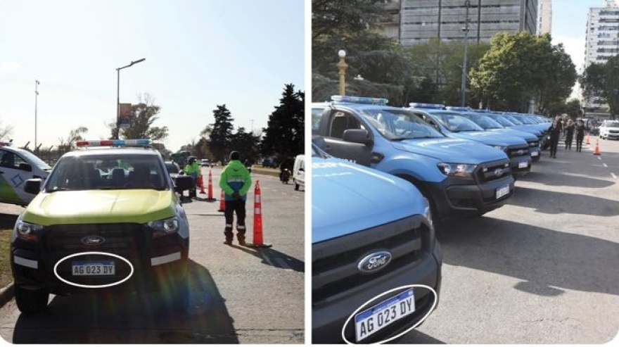 Por ejemplo, una de las camionetas marca Ford presentadas hoy lleva la patente AG 023 DY. Ploteada a nueva, la 4x4 está lista para el recorrido. Empero, este vehículo ya estaba en funciones durante la gestión de Julio Garro. (Ver foto).