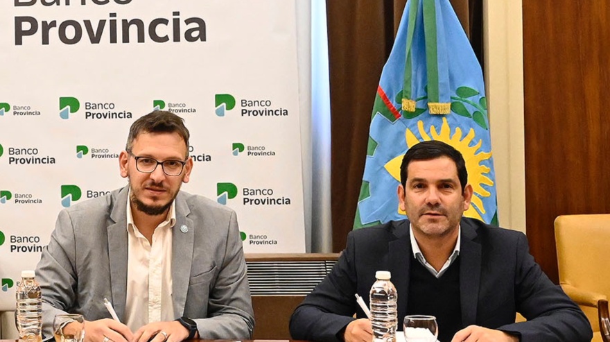 El Intendente realizó la firma del convenio con el presidente del Banco Provincia, Juan Cuattromo; el presidente de Provincia Servicios Financieros, Ariel Lieutier; y la presidenta de Provincia Leasing, Valeria Dallera.