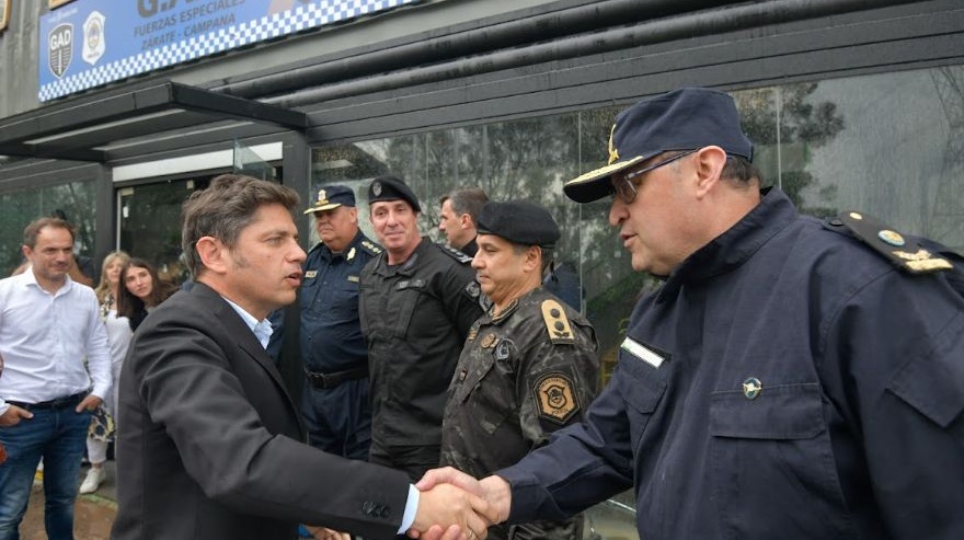 El gobernador de la provincia de Buenos Aires, Axel Kicillof, encabezó este miércoles en Campana la inauguración de un nuevo destacamento policial del Grupo de Apoyo Departamental (GAD), junto al ministro de Seguridad, Javier Alonso; y el intendente local, Sebastián Abella.