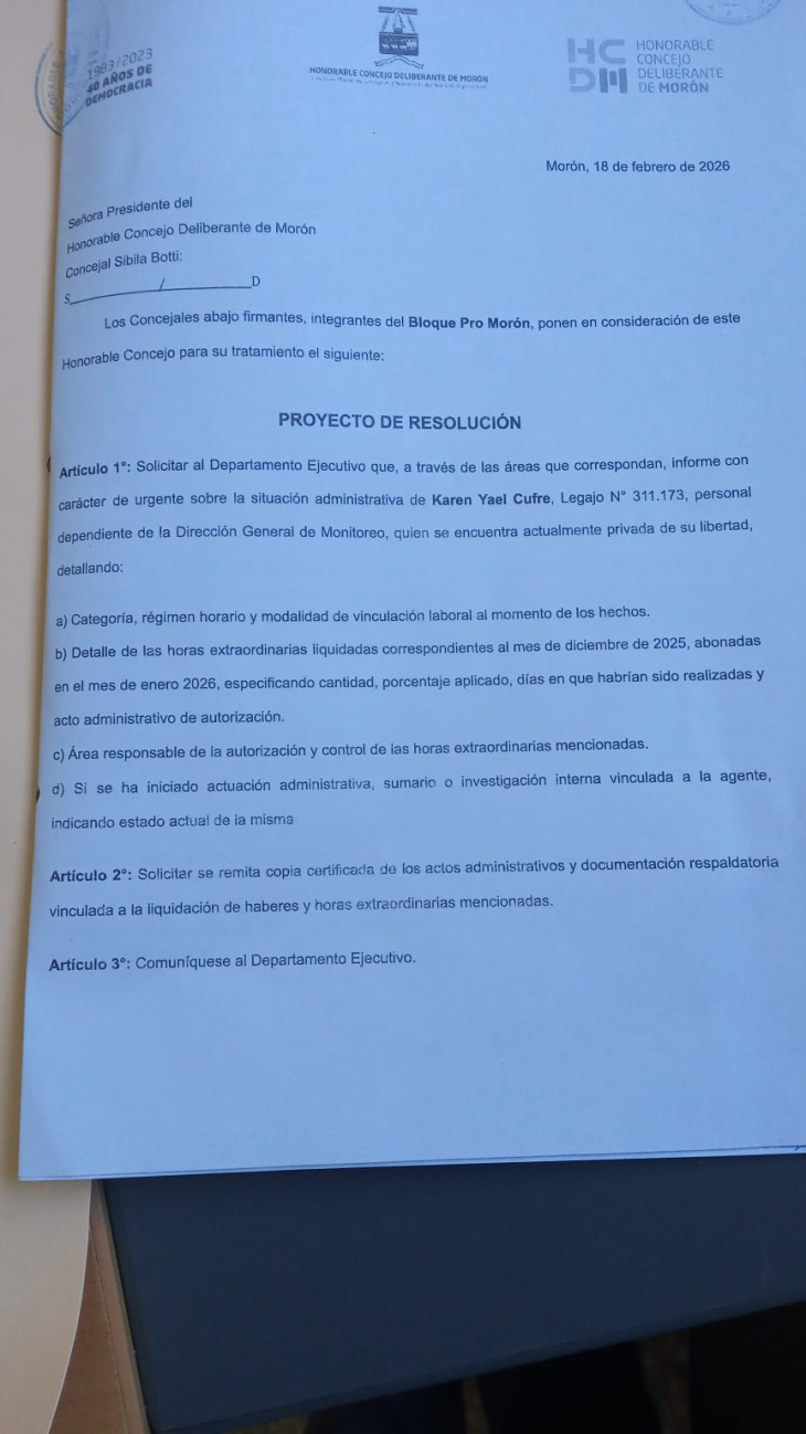 La mujer detenida integra el Movimiento Evita y es una ferviente militante de las huestes del intendente Lucas Ghi. Gracias a ese fervor, Cufré habría ingresado al Municipio de Morón en octubre de 2025, impulsada supuestamente por la concejal ultraoficialista Vanina Moro, líder del Evita en el distrito. A pesar de su nula experiencia en materia de Seguridad Ciudadana y su vínculo directo con un delincuente detenido como Duarte Areco, el secretario del área Damián Cardoso no tuvo inconvenientes en darle trabajo a Cufré en el centro de monitoreo de cámaras de seguridad en Villa Sarmiento, una de las zonas más castigadas con salideras, entraderas, robos de autos y motos, arrebatos y hasta homicidios.