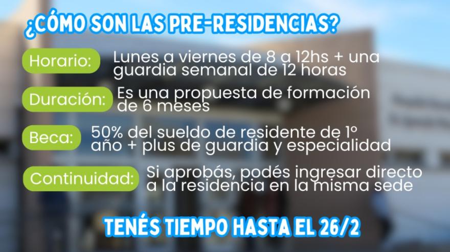 En cuanto a la beca, las y los pre-residentes percibirán el equivalente al 50% del sueldo de un residente de primer año, además de los plus correspondientes por guardia y especialidad.