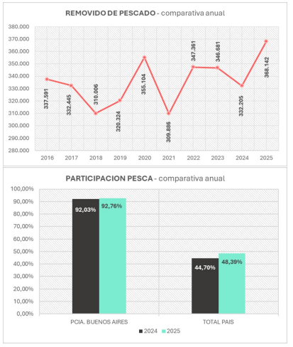 Durante el año 2025, el puerto registró un balance general positivo, destacándose especialmente el crecimiento en la actividad pesquera y una dinámica de comercio exterior que, si bien presentó variaciones en volumen, evidenció mejoras en términos de eficiencia operativa. En relación con el movimiento de pescado, el año 2025 alcanzó un total de 368.142 toneladas, lo que representa un incremento del 10,8 % respecto de las 332.205 toneladas registradas en 2024. Este volumen consolidó al puerto como el principal nodo pesquero de la región, concentrando el 92,76 % de la actividad provincial y aproximadamente la mitad del total nacional, con picos de actividad particularmente marcados durante el mes de mayo.