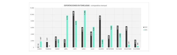 Por último, la operatoria de buques frigoríficos evidenció una mejora en su eficiencia: a pesar de haberse registrado un buque menos que en el año anterior, el volumen exportado por esta vía aumentó un 14 %, alcanzando las 7.690 toneladas.