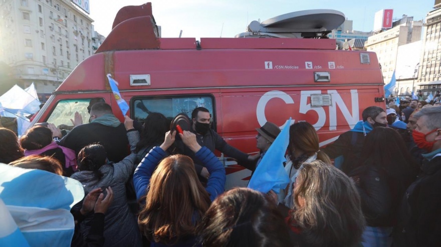Ayer por la tarde un grupo de trabajadores de prensa del canal de televisión C5N fue atacado por varios manifestantes que se expresaban en contra de la cuarentena.
