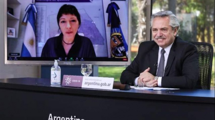 Acompañaron al jefe de Estado los ministros de Obras Públicas, Gabriel Katopodis; y de Mujeres, Género y Diversidad, Elizabeth Gómez Alcorta; como la titular de Aysa, Malena Galmarini, mientras que las jefas comunales del todo el país participaron por videoconferencia.