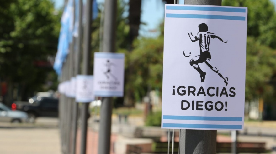 Otra alternativa fue la que presentó en Bolívar el jefe comunal Marcos Pisano. En el centro cívico de la ciudad colocaron en el Paseo de las Banderas carteles con la inscripción: ¡Gracias Diego!