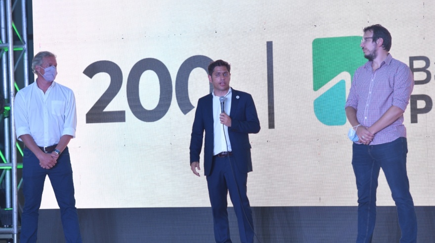 El gobernador Axel Kicillof junto al presidente del Banco Provincia, Juan Cuattromo, encabezaron los festejos del bicentenario del Banco Provincia.